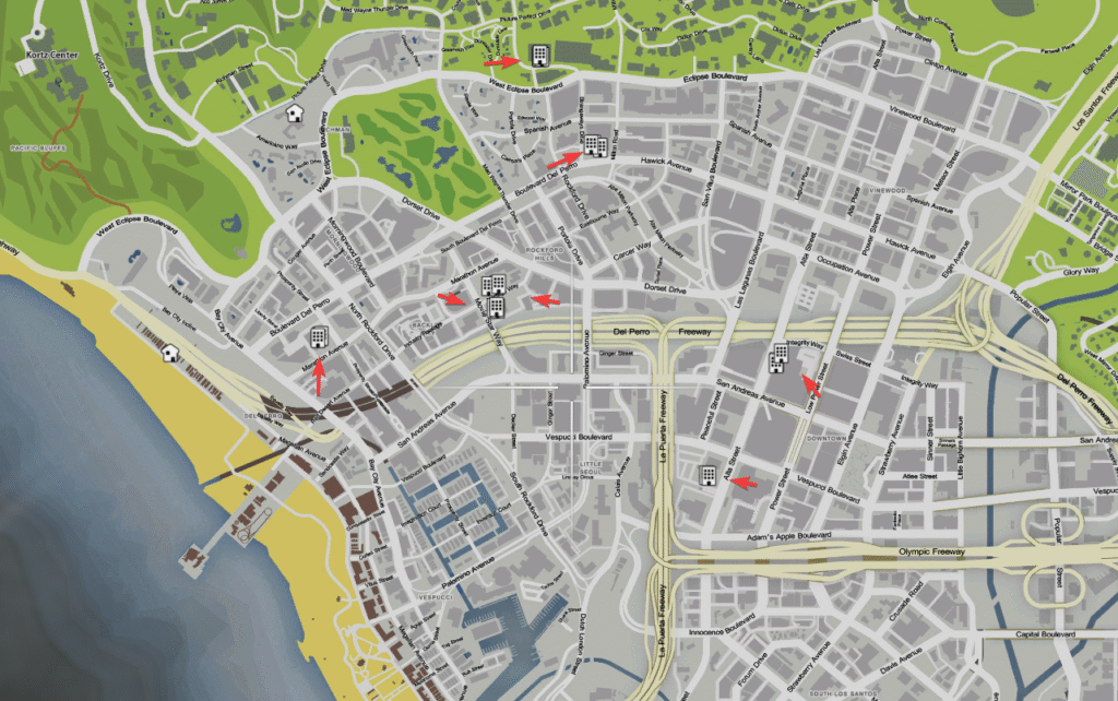 Penthouses are modern and tall buildings with well-furnished interiors holding up to 800 storage. Dynasty8 has a handful of locations from Downtown to Del Perro. These properties can be showcased by agents and all unique locations have specific views with a classic interior giving you the luxury life that fits you.